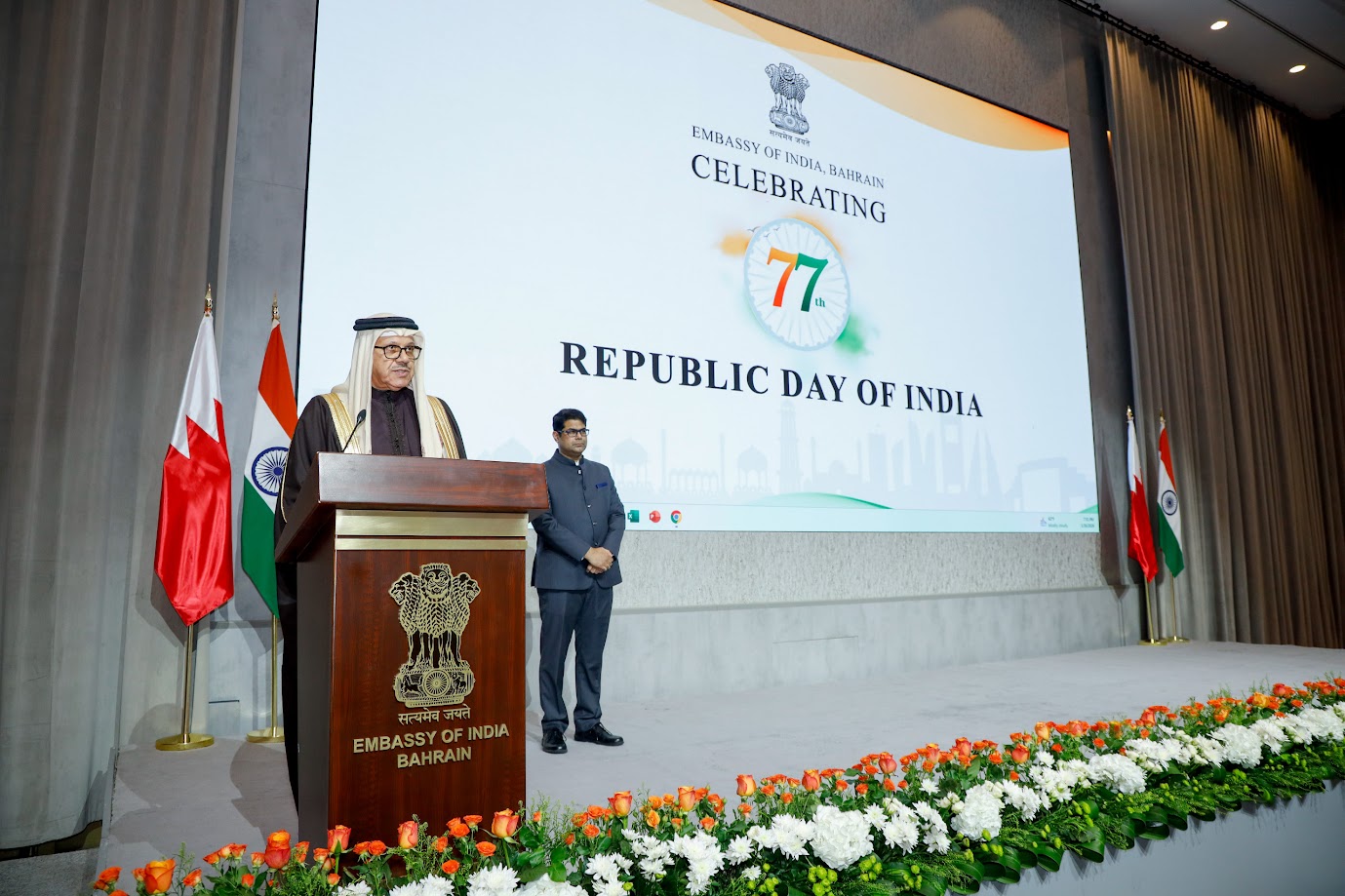 Embassy of India, Bahrain hosted a Reception on the occasion of 77th Republic Day of India graced by Foreign Minister H.E. Dr. Abdullatif bin Rashid Al Zayani as the Chief Guest. Renowned Bahraini rapper Mr. Hussam Aseem also attended the event. (26 January 2026).