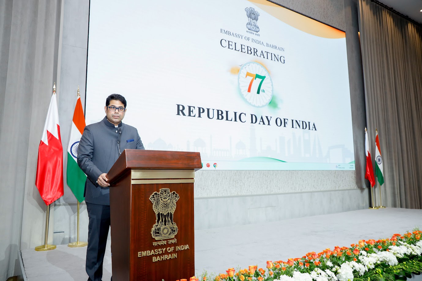 Embassy of India, Bahrain hosted a Reception on the occasion of 77th Republic Day of India graced by Foreign Minister H.E. Dr. Abdullatif bin Rashid Al Zayani as the Chief Guest. Renowned Bahraini rapper Mr. Hussam Aseem also attended the event. (26 January 2026).